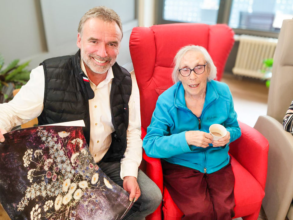 Als wäre dieser besondere Vormittag nicht schon Geschenk genug, überraschte uns Frau Schwenk-Anger mit einer großzügigen Geste: Sie möchte unserem Pflegezentrum 100 Poster schenken, die Motive aus ihren beliebten Kinderbüchern zeigen. Diese farbenfrohen Kunstwerke werden schon bald unsere Wände schmücken und täglich ein Lächeln auf die Gesichter unserer Bewohnerinnen und Bewohner zaubern.